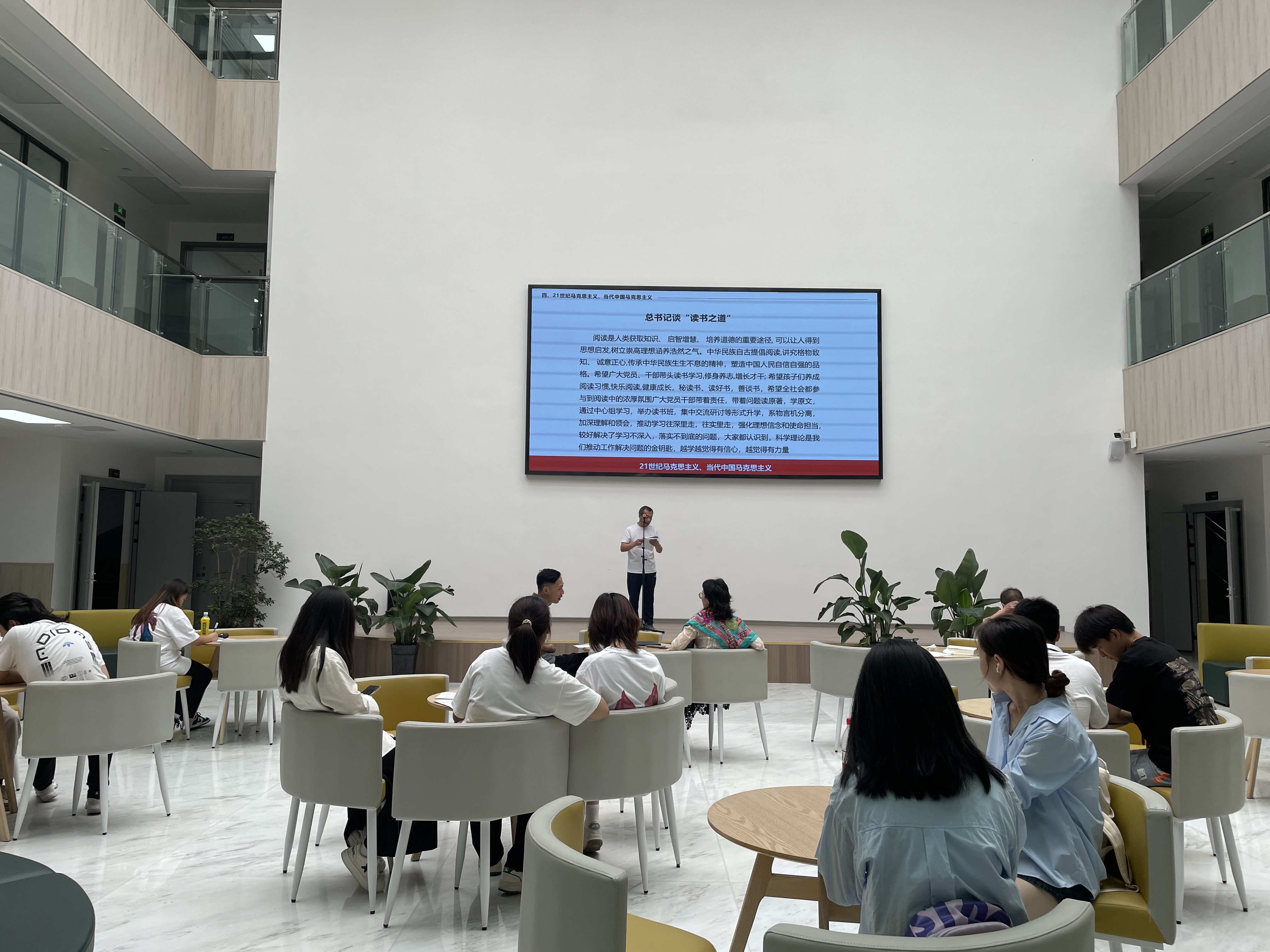 师生在分享书籍的过程中,引经据典,抒发自己对书中内容的观点、感触,畅谈自己读书之后的感想,加入了自己的理解和思考,体现了多样化的讲述风格,给在座的师生留下了深刻印象。图书馆两位馆长重温了《习近平的读书故事》和《习近平自述:我的读书心得》中的段落,通过学习习近平总书记的读书之道,让我们感受到了书籍的力量。