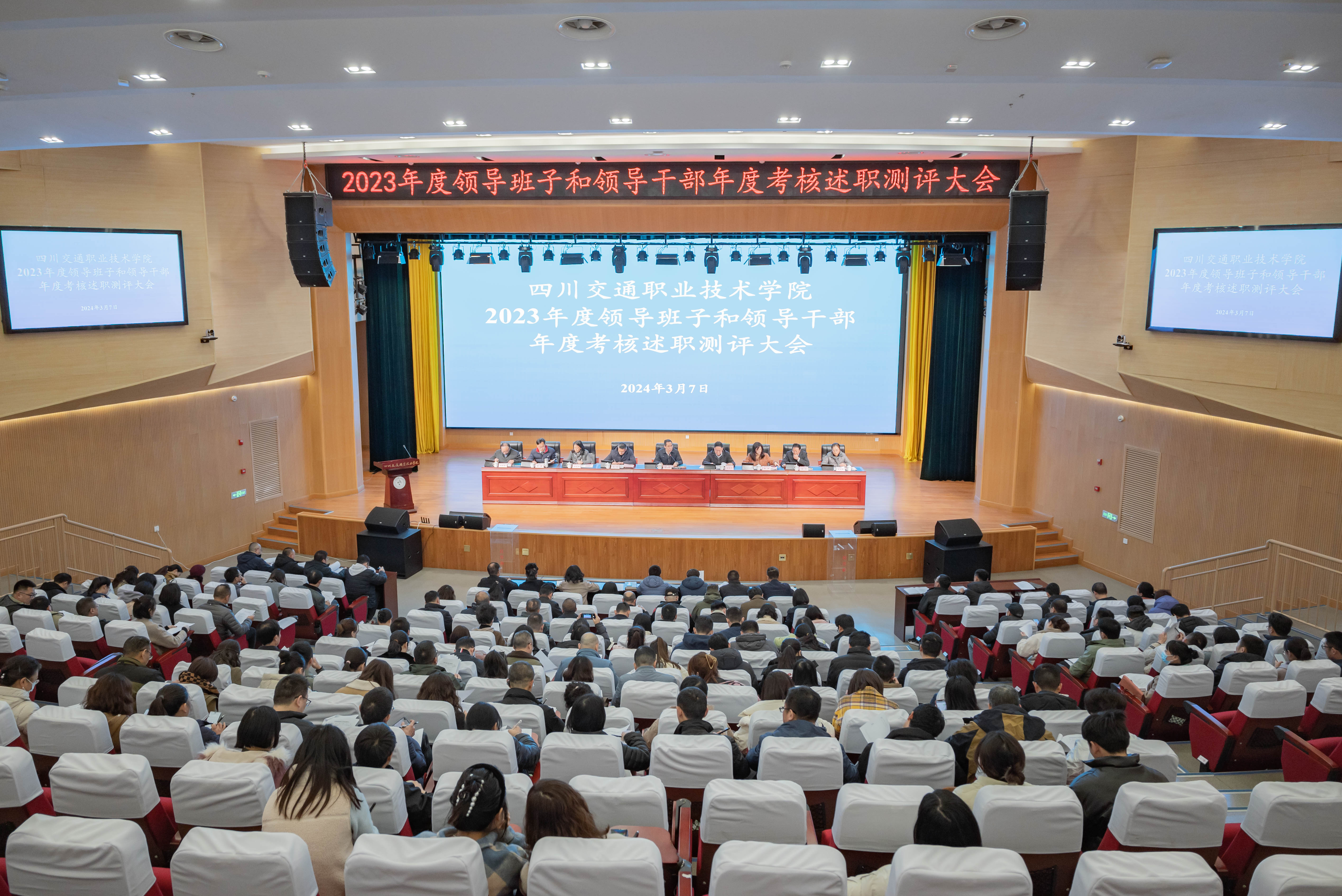 3月7日下午,学院在厚学楼报告厅召开2023年度领导班子和领导干部考核暨“一报告两评议”工作大会。在家院领导、副科级及以上干部,人大代表、政协委员、无党派人士、民主党派人士代表、离退休代表,以及副高职称以上的教代会代表等160余人参加会议。