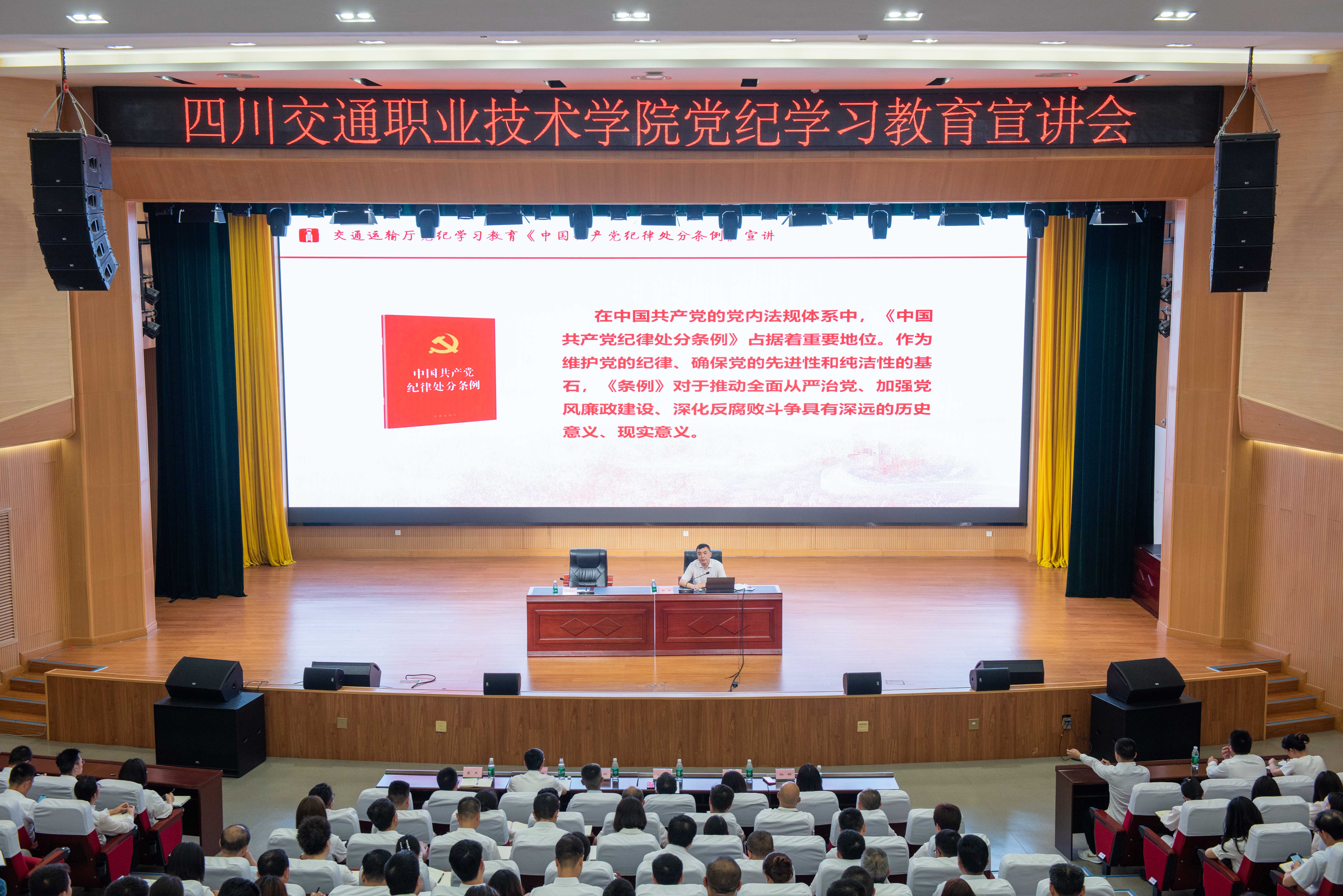 5月27日下午,学院举办党纪学习教育宣讲会,邀请驻厅纪检监察组副组长杨国作《中国共产党纪律处分条例》专题宣讲。学院党委副书记、纪委书记鞠敬主持会议。