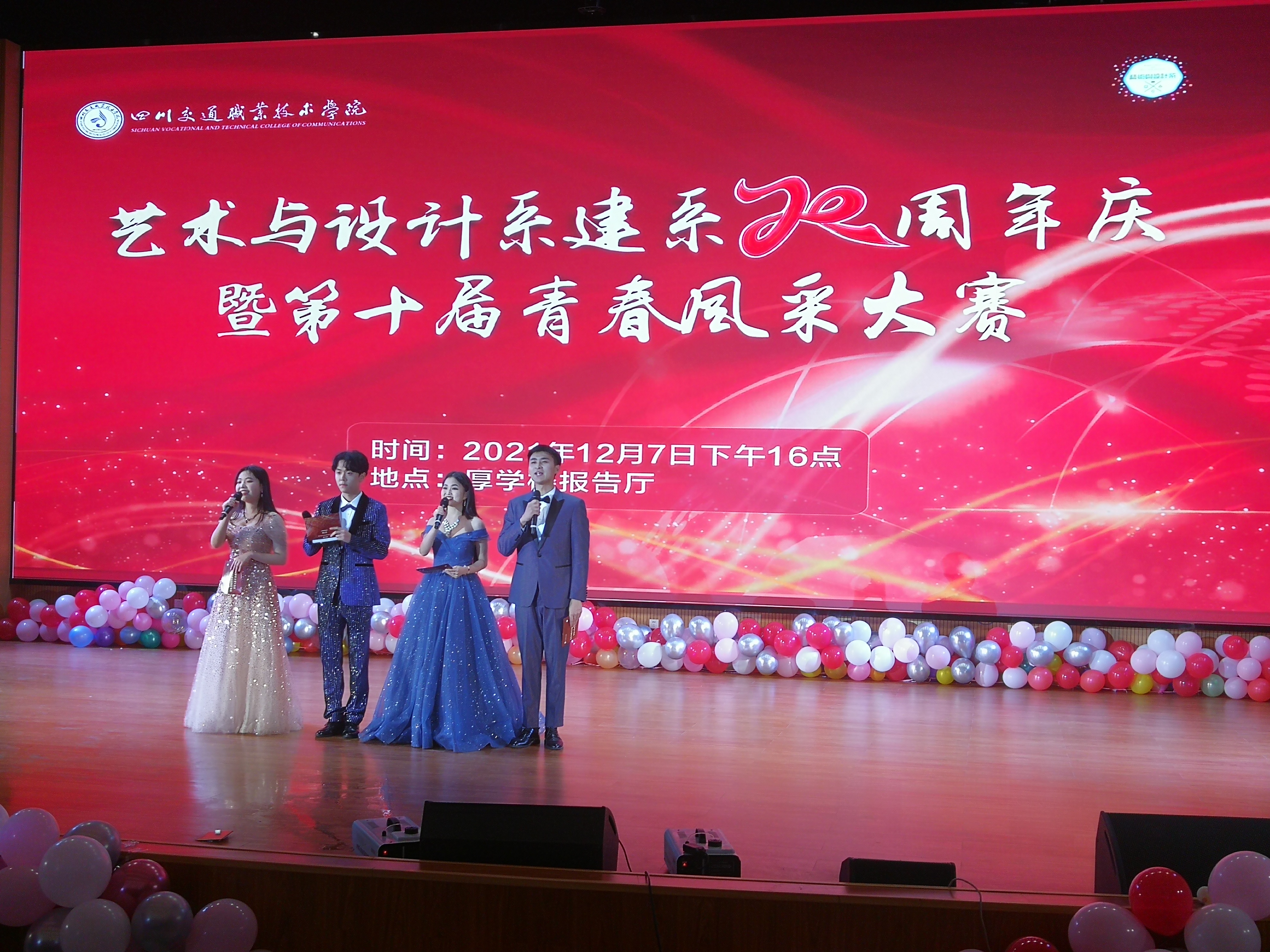 2021127日下午,艺术与设计系建系二十周年庆暨第十届“青春风采”大赛汇报演出在学院厚学楼报告厅举行,学院党委委员、副院长权全、规划与产教融合发展中心主任陈飚、教务处副处长周旭、艺术与设计系班子成员、部分校企合作单位负责人莅临活动现场,全系师生代表欢聚一堂。