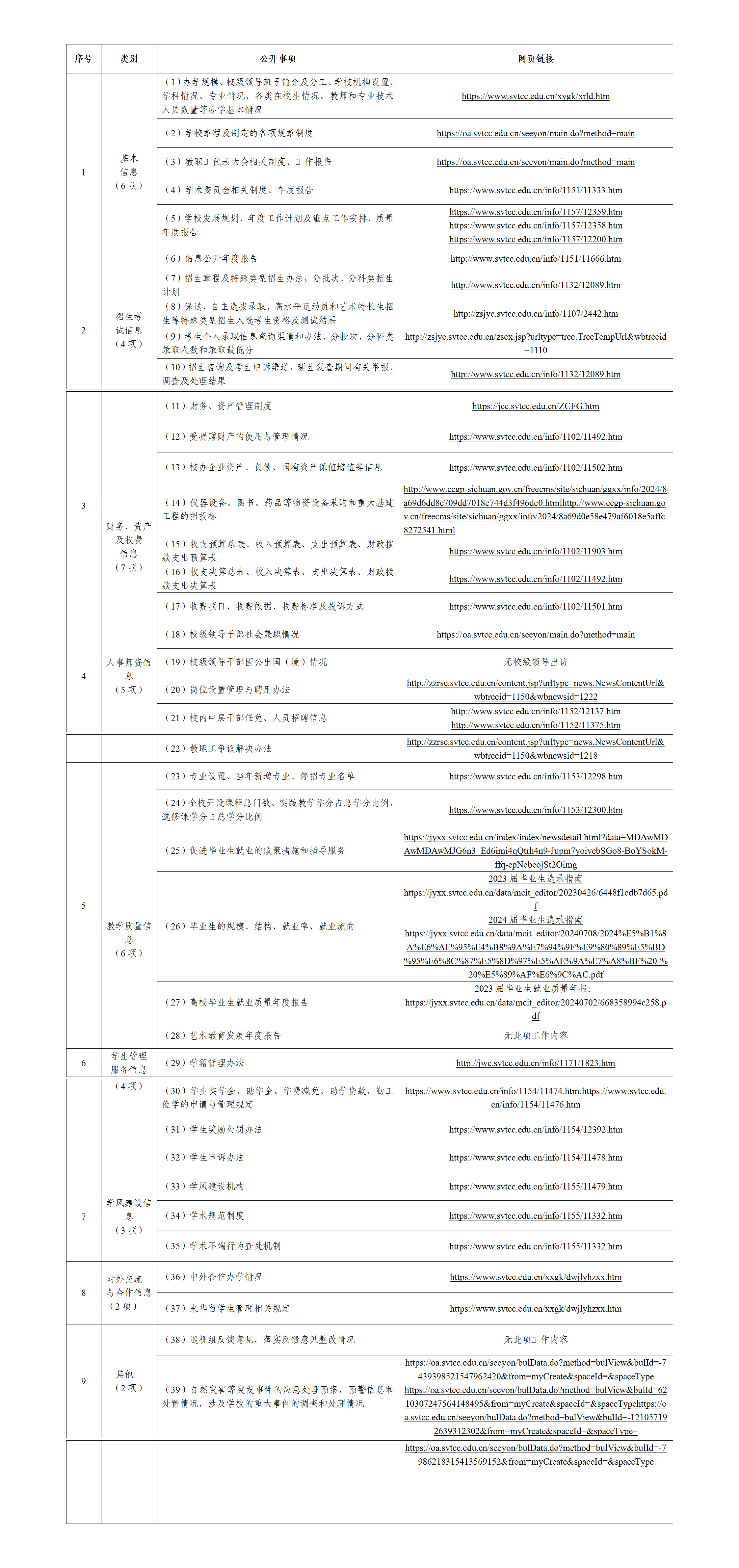 1.基本信息公开。共发布基本信息280条,分别是:《四川交通职业技术学院学术委员会章程》《关于印发〈四川交通职业技术学院章程(2022年修订版)〉的通知》《四川交通职业技术学院2022-2023学年度信息公开工作报告》《四川交通职业技术学院职业教育质量年度报告(2023)》,以及学院265项规章制度和学院概况。学院概况包含学院办学规模、领导班子简介及分工、机构设置、专业设置情况等内容。